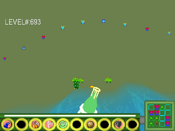 Ocean going UFO generates tidal waves, upward protrusions of ground, and half a dozen other super weapons to sweep clean the map icon (on the bottom right), sweep clean the space of space invaders.